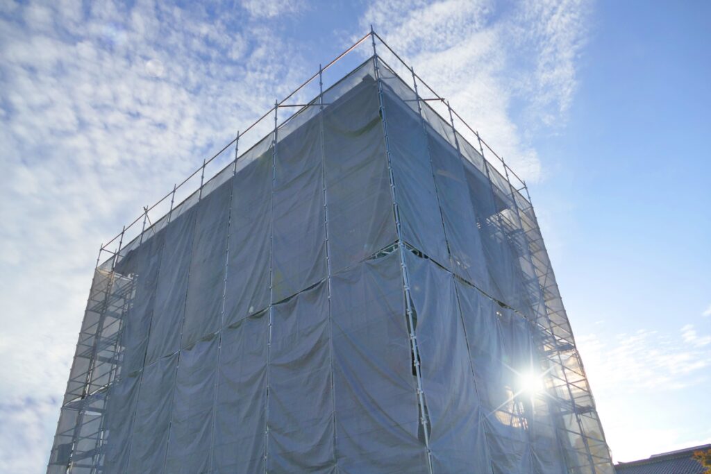 タワーマンションの場合、高所作業が必須となるため、ゴンドラや移動昇降式足場など、複雑な作業足場を使用します。