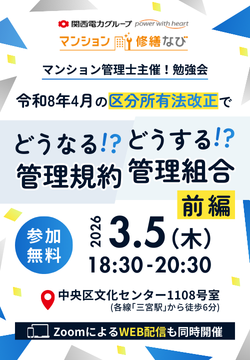 - 区分所有法改正に至った背景や改正内容、管理規約の改定箇所等について、マンション管理士が徹底解説します!